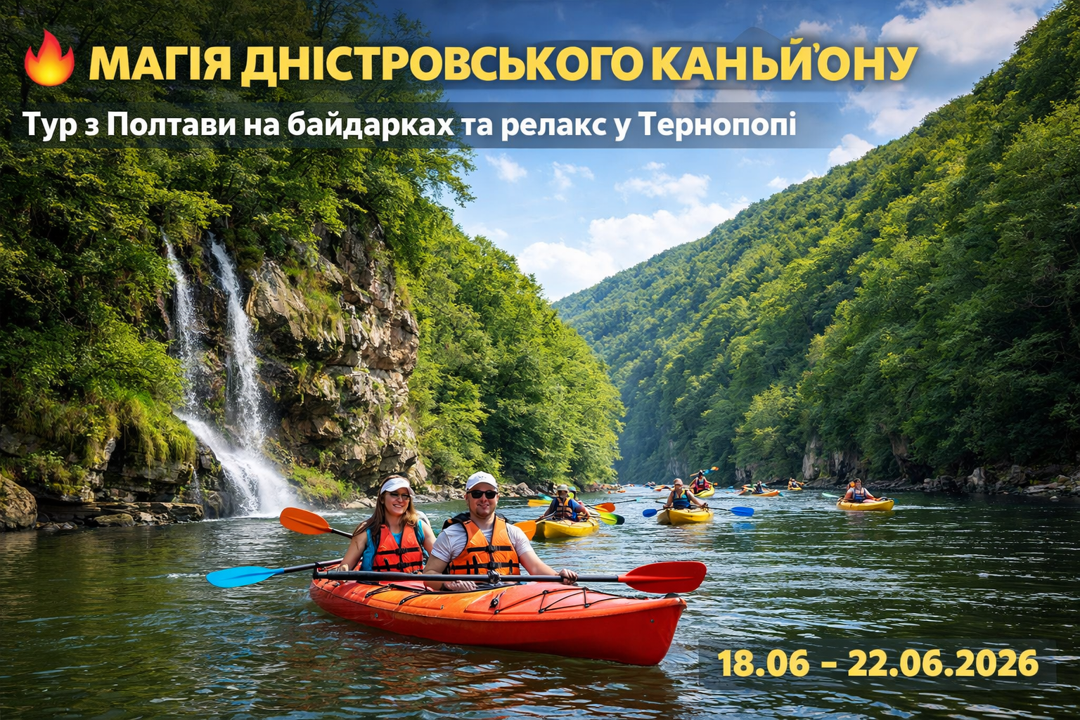 🔥 МАГІЯ ДНІСТРОВСЬКОГО КАНЬЙОНУ: Тур з Полтави на байдарках та релакс у Тернополі